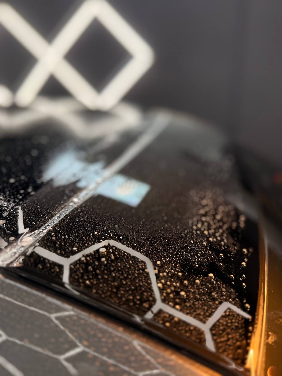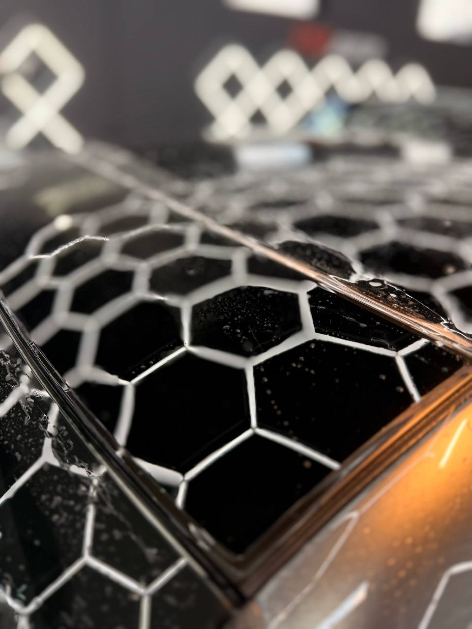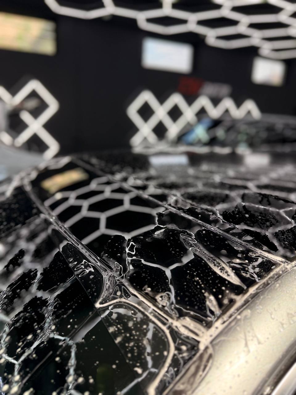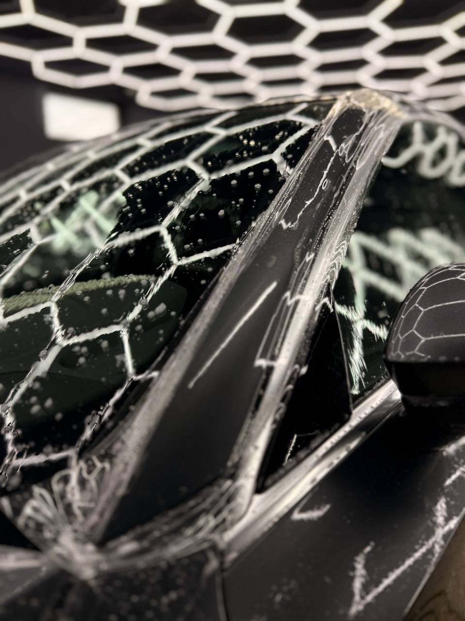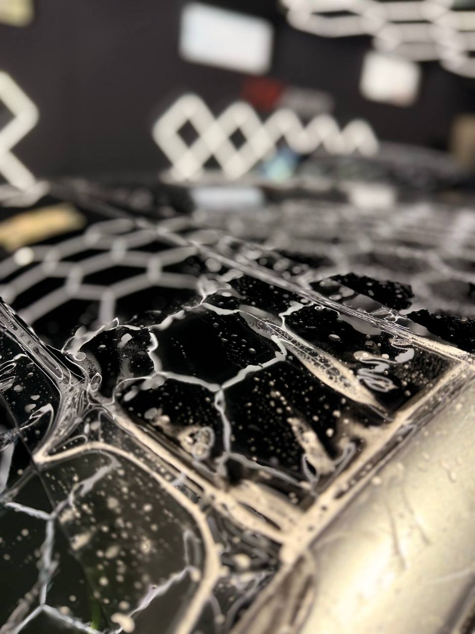 Далее не о процессе, а о конечном результате который получается на данном авто. Автомобиль будет меньше пачкаться, пленка обладает высоким гидрофобным эффектом и грязь не будет задерживаться на кузове. Ну и самое главное это защита, каждый оклеенный элемент выполнен с подворотом пленки по периметру. Сколы и царапины больше не угрожают ЛКП данного автомобиля, и если вдруг произойдет неприятная ситуация с мелким ДТП к примеру во дворе, с большей долей вероятности этот вопрос решиться заменой пленки на отдельном элементе. Так же автомобиль обрел на долго гарантированный блеск, так как пленка имеет самозаживляющий эффект и мелкие риски и царапинки будут затягиваться под воздействием температуры.