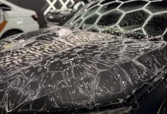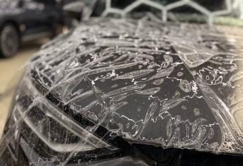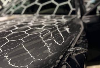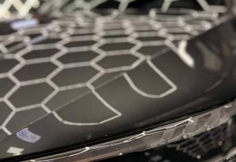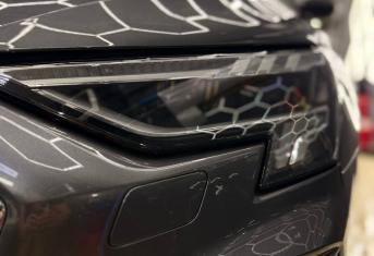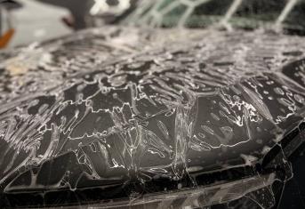 В работе применяем полиуретановую пленку NAR, толщиной 190 микрон. Эта пленка обладает функцией самовосстановления небольших царапин при высокой температуре. Клиент выбрал для своего автомобиля пакет Трасса Расширенный, что подразумевает оклейку передней части кузова и оптики. Более подробно с пакетами оклейки вы можете ознакомится в соответствующем разделе на нашем сайте.