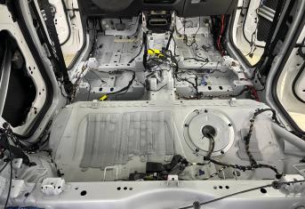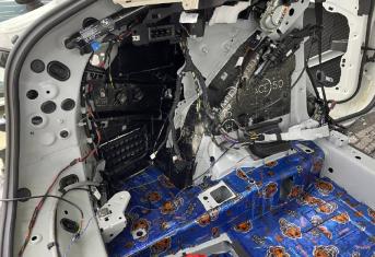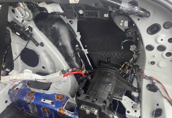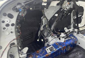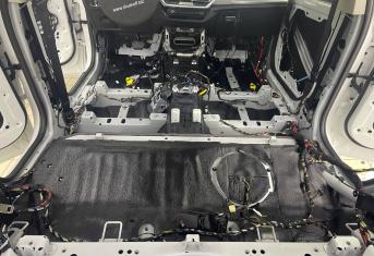 Приступаем к работам с полом и салоном авто. На разборку всего салона уходит около 1 часа. После чего мы подготавливаем поверхность, очистив ее от пыли и предварительно обезжирив.