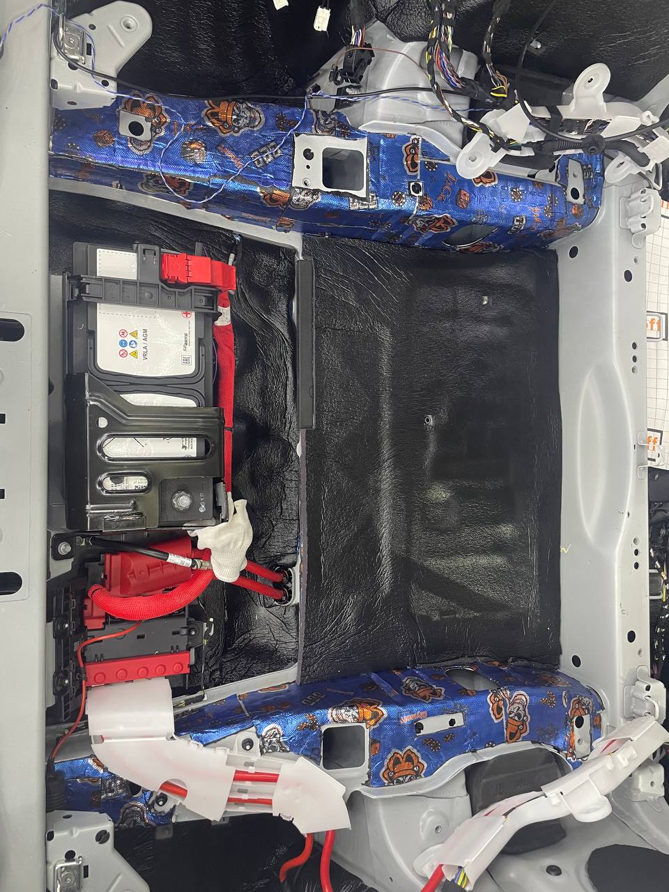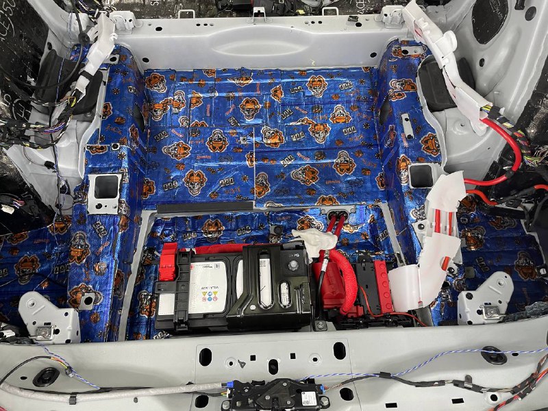 Крышка багажника обрабатывается Шумофф Space 2.0. На обшивку крышки наносим шумопоглотитель Шумофф Герметон A15. По канту обшивки и клипсы обрабатываем Шумофф Absorber 5. Всю проводку на крышке обрабатываем Шумофф Specific.