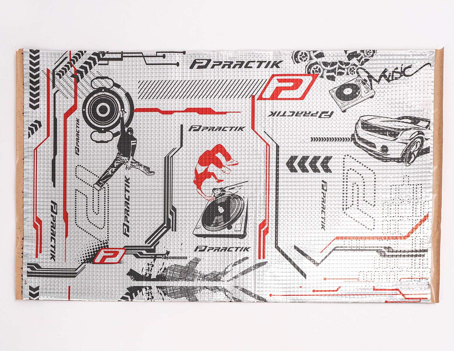 PRACTIK 2.1 виброизоляция — МАСТИЧНАЯ. Толщина 2.1мм и фольга 60 микрон. Лист 0,75*0,46м.