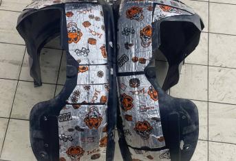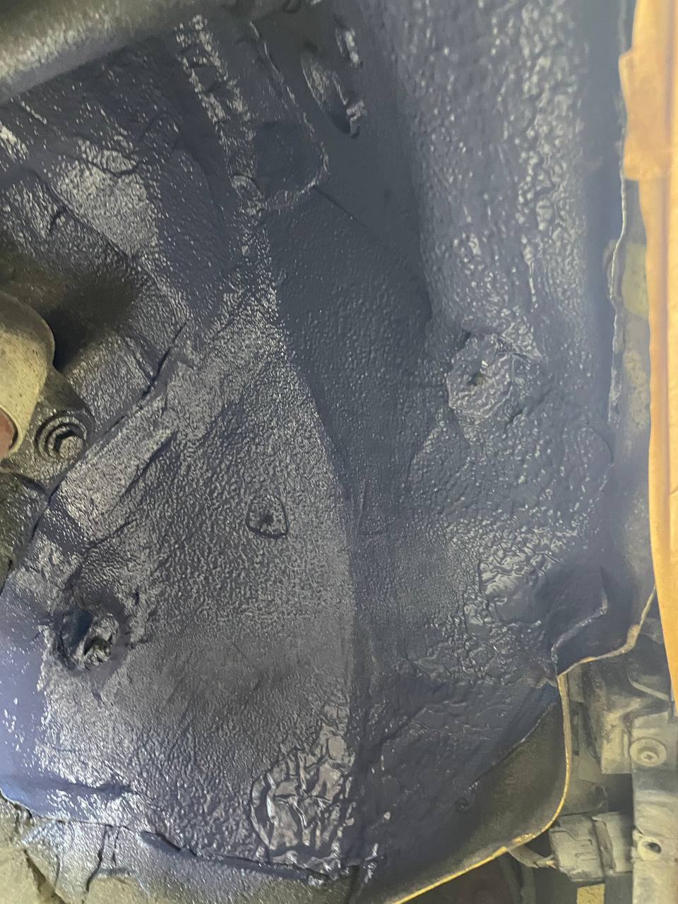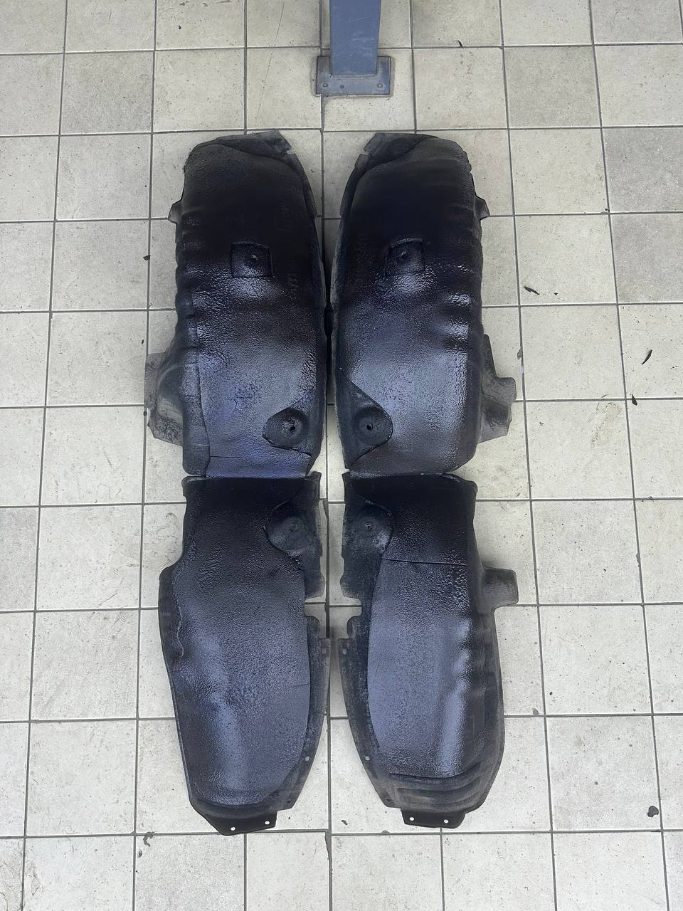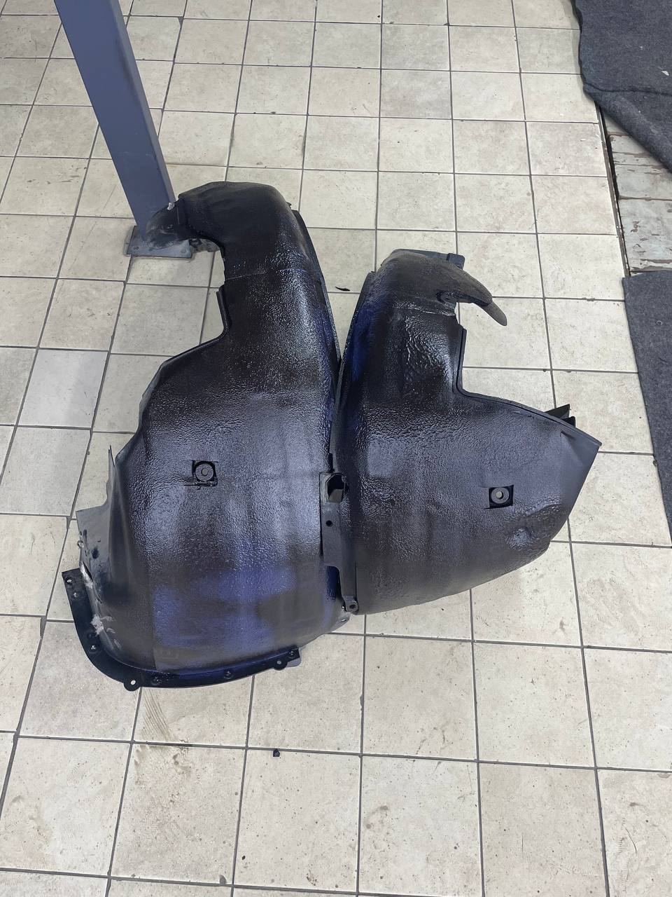 На металл передних арок, сторона к салону, и проем между кузовом и крылом наносим виброизоляцию Шумофф Super Jack. Это технологичный и эффективный вибродемпфер толщиной 3,6 мм с повышенным уровнем адгезии, что позволяет ему прекрасно работать в такой агрессивной среде как арки с улицы. Подкрылки пластиковые, на них мы монтируем локально виброизоляцию Шумофф Jack и шумоизолятор Шумофф Комфорт 6. Виброизоляция наносится с зазорами, чтобы сохранить гибкость локеров для дальнейшего обслуживания автомобиля. После монтажа материалов на подкрылок и кузов автомобиля все обработанные элементы заливаем жидким полимером. Так мы герметизируем швы и защищаем новые материалы от механических повреждений, после просыхания полимер обретает высокую прочность.