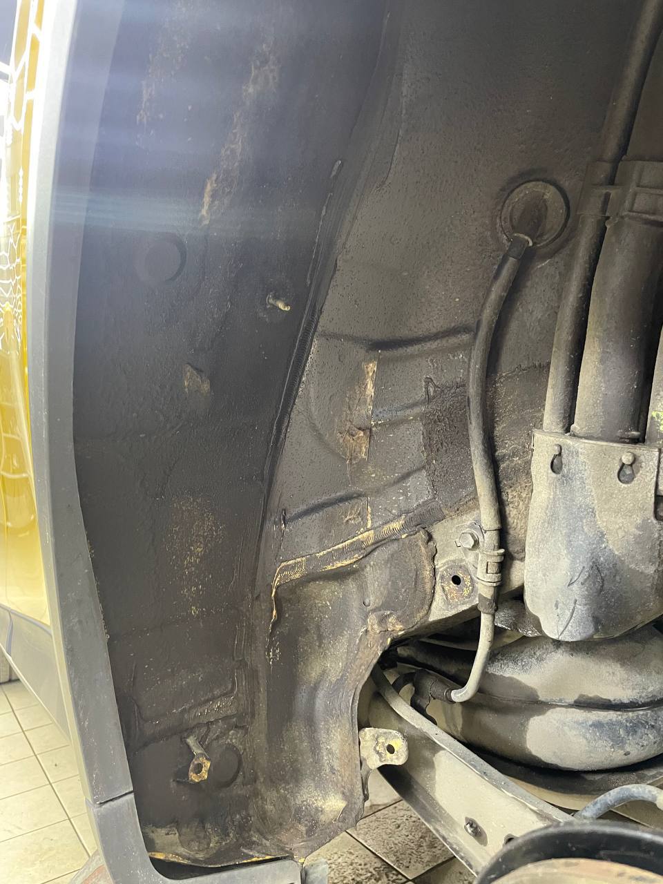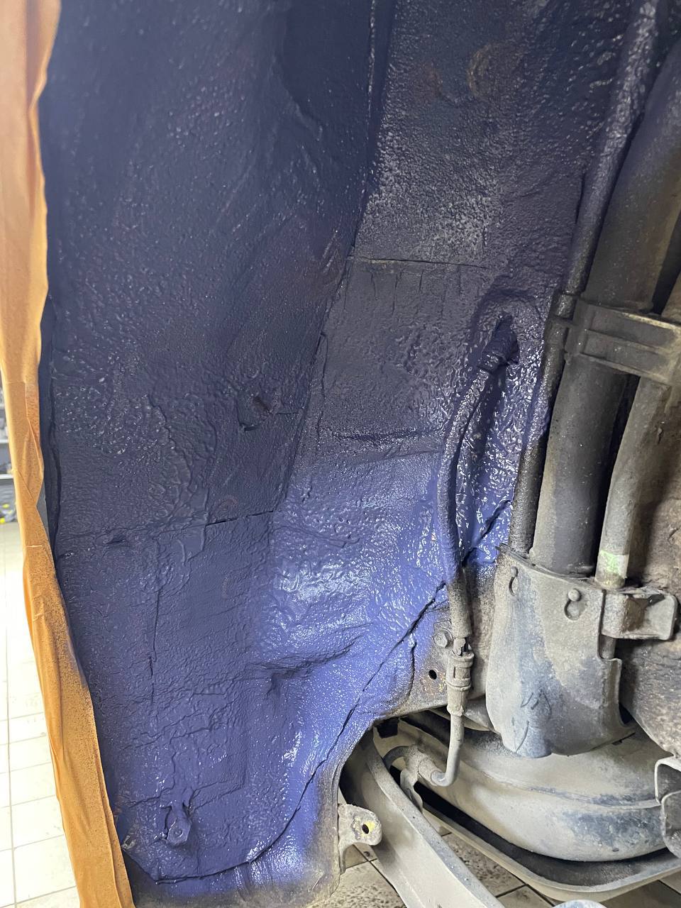 Подготовительные работы начинаются со съема колес, локеров. Все обрабатываемые поверхности предварительно тщательно вымываем от грязи и обезжириваем. Учтите, если автомобиль был обработан антикором у официального дилера, то монтаж наших материалов может быть затруднен, а в некоторых случаях вообще невозможен – виброизоляция просто не прилипнет к такой поверхности, как правило она жирная или остается всегда в полу-сухом состоянии.