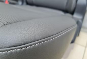 Задача была заменить материалы обивки сидений, подлокотников и подголовников. При перетяжке салона Toyota Noah мы применили текстурную экокожу и экокожу с псевдоперфорацией на микрофибре. Клиент выбрал белый цвет ниток.
