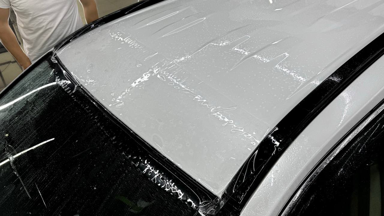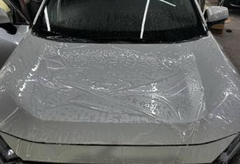 В работе применяем полиуретановую пленку NAR, толщиной 190 микрон. Эта пленка обладает функцией самовосстановления небольших царапин при высокой температуре. Клиент выбрал вариант полной оклейки своего автомобиля.