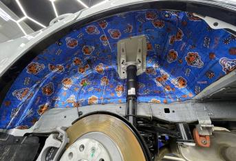 Подготовительные работы начинаются со съема колес, локеров и защиты необрабатываемых элементов. Все поверхности предварительно тщательно вымываем от грязи и обезжириваем. Важно знать, если автомобиль был обработан антикором у официального дилера, то монтаж наших материалов может быть затруднен, а в некоторых случаях вообще невозможен – виброизоляция просто не прилипнет к такой обработке, как правило она жирная или остается всегда в невысохшем состоянии.