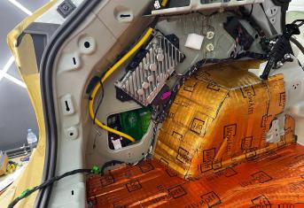 Вторую стенку двери обрабатываем Шумофф Jack. Саму обшивку двери локально оклеиваем виброизоляцией Шумофф Jack для снижения резонанса пластика и полностью закрываем шумопоглощающим материалом Шумофф Absorber А15. По канту обшивки двери укладываем Шумофф Absorber 5, а на открытую проводку Шумофф Specific.